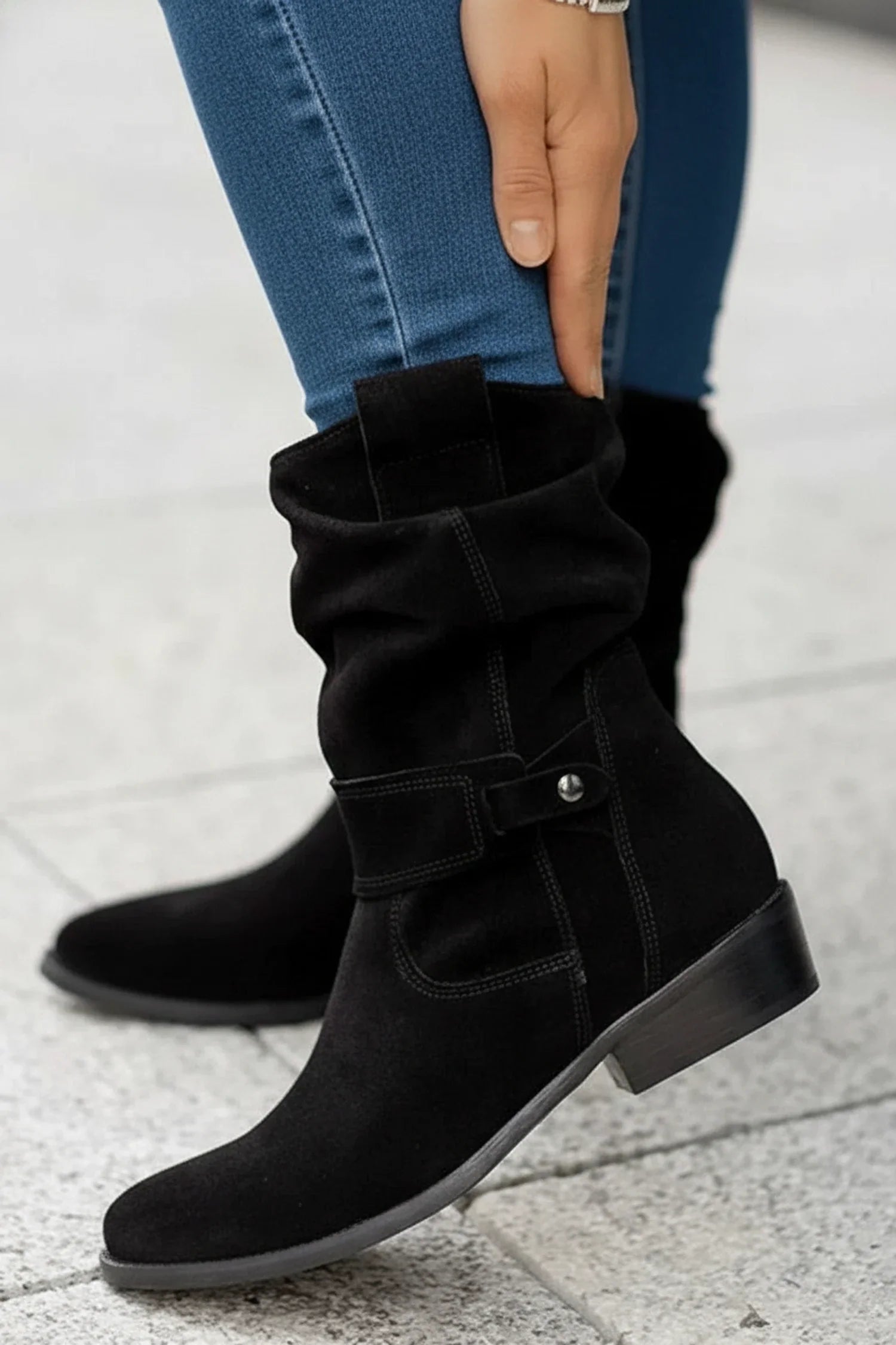 Add effortless charm to your everyday outfits with these slouch-style ankle boots. Designed with a soft, relaxed shaft and decorative buckle strap, they bring a modern yet timeless feel to your wardrobe. The low block heel provides comfortable lift, making them perfect for all-day wear.